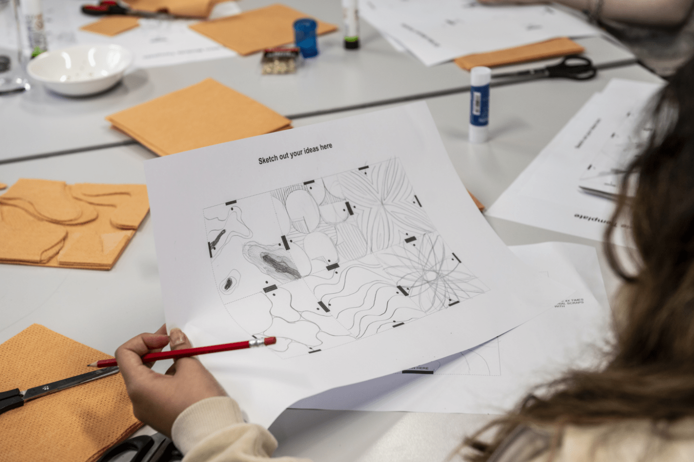 Following a presentation of work and principles of interior design, including the environmental implications and solutions of the sector, Students embarked on a hands-on workshop to create a 3D modular surface – a tangible embodiment of sustainable design principles.