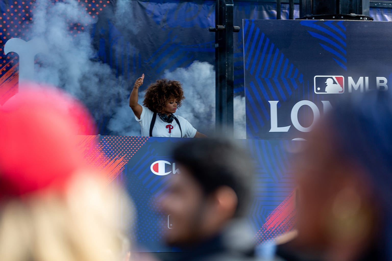 This year, the New York Mets took on the Philadelphia Phillies in a two-game series at London Stadium, which we brought to life through distinctive, bold branding throughout the festival. With a variety of original merch and ballpark-food inspired food from each city (including plenty of hot dogs!), we created a playground for cultural collaborations and made it clear that MLB had come to town.