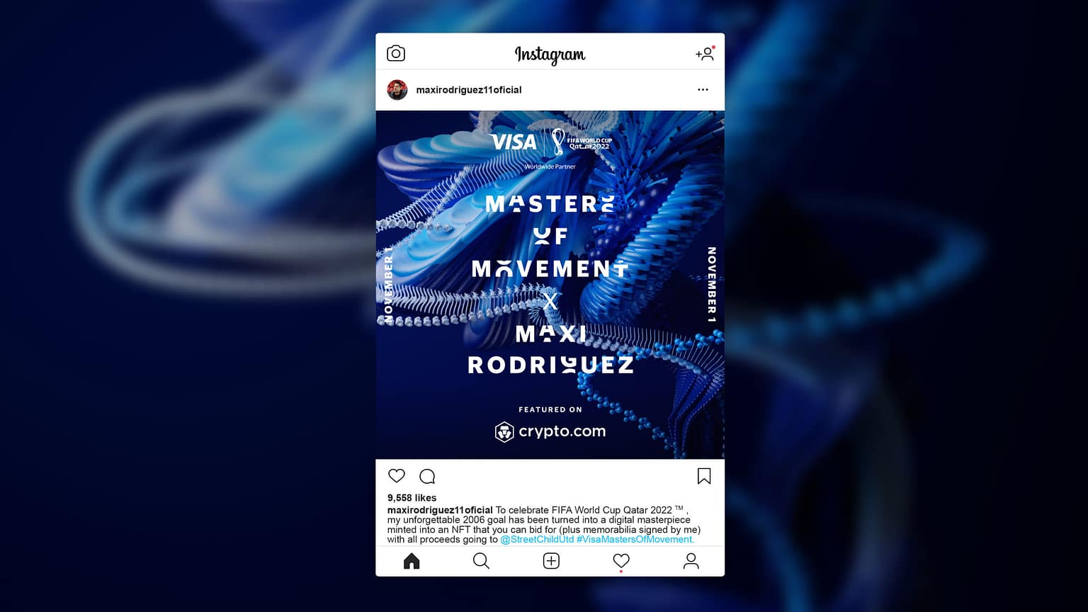 In the build-up to the tournament, iconic moves from five legendary players – Michael Owen, Tim Cahill, Jared Borgetti, Carli Lloyd and Maxi Rodriguez – were transformed into works of art, minted as NFTs, and auctioned on Crypto.com, with all proceeds going to the charity Street Child United.